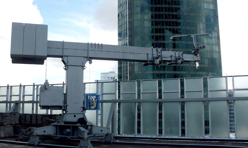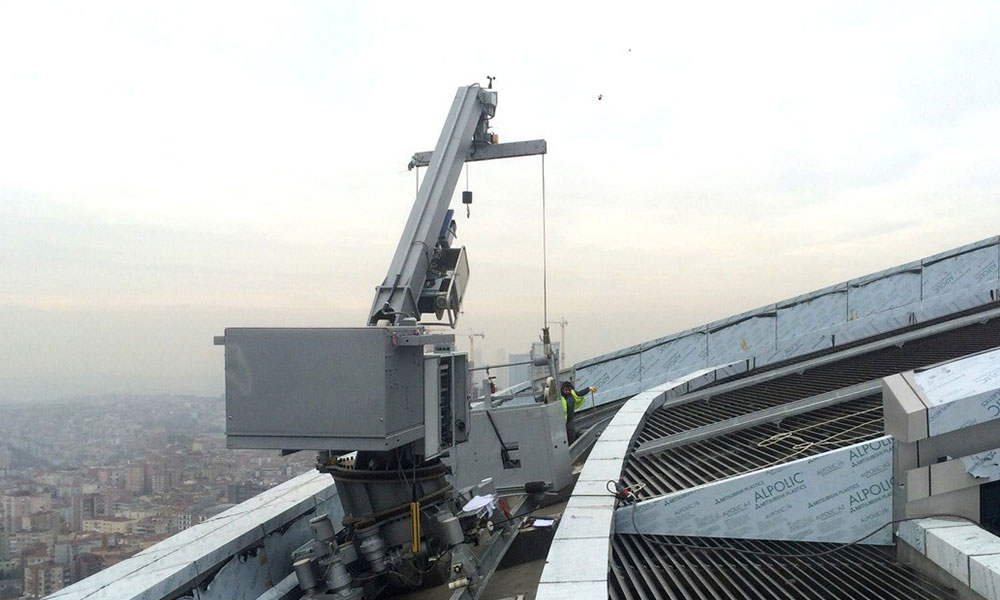 “Cephe Temizleme Makinaları” veya “Bina Bakım Üniteleri” olarak adlandırılan bu sistemler, cephe elemanlarının bakım ve onarımı, cam değişimi ve temizliğinde kullanılan kalıcı sistemlerdir.