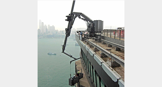 Genellikle uzun bir kol ve kola bağlanan sepeti yönlendiren hareketli bir makinadan oluşmaktadır ve cephenin mümkün olan her bölgesine ulaşabilecek şekilde tasarlanır. Bina çatısı ve cephe şartlarına göre sabit bir noktada çalışabildikleri gibi bir ray sistemi üzerinde de hareket edebilirler. Bu durumda makine ya çift sıra ray sistemi üzerinde ya da bir kılavuz ray boyunca tekerlekleri üstünde betonda yürüyebilmektedir. Makinalar, teras zemininde yürüyebileceği gibi projedeki şartlara göre parepet’e bağlanarak da hareket edebilirler.