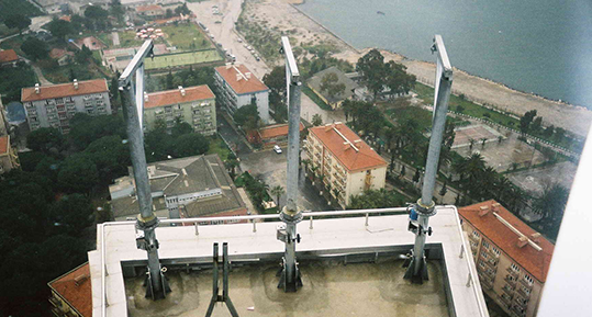 Binaların teras zeminlerine veya parapetlerin iç yüzeyine yerleştirilen yuvalara Davit adı verilen kollar takılır.